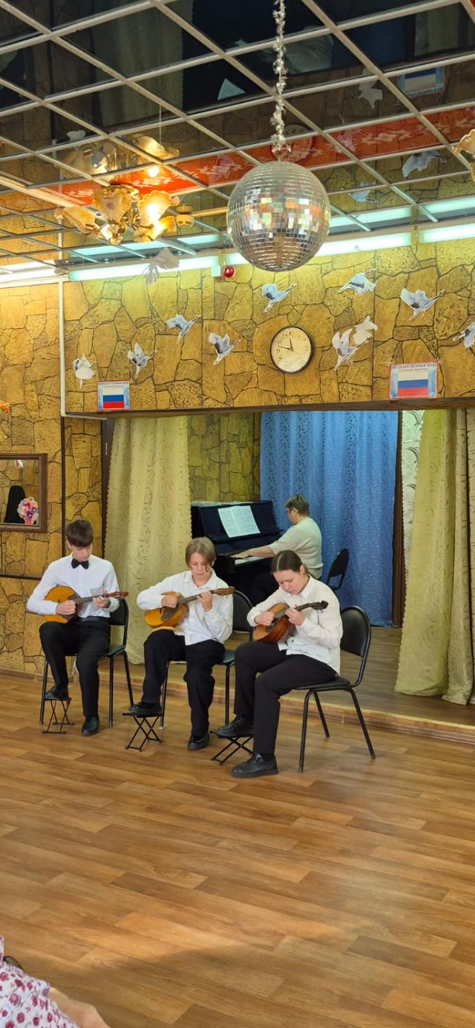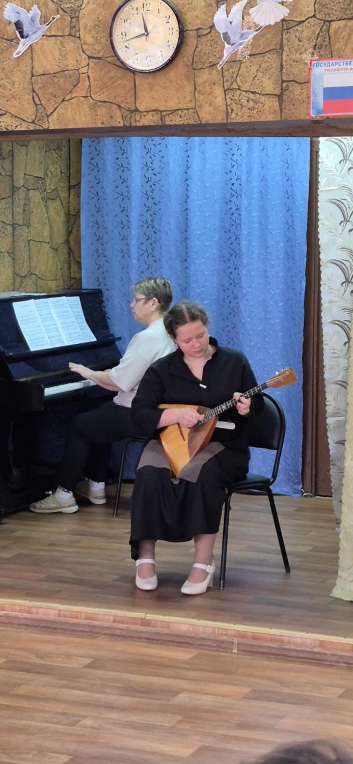 Запоминающим стало выступление Пронякиной Софии. Кларнет в ее руках звучал красиво, ярко и уверенно. Конечно жена концерте были представители отделения народных инструментов. Выступили Сурин Никита (с песней военных лет), Шмелева Александра, ансамбль «Рондо» (Демина Кира, Горшков Костя, Синюков Роман), семейный Арт-дуэт балалаечников «Братья» (Шанины Егор и Григорий вместе с бабушкой Натиной Л.А.) и преподаватель Семенова И.В.
