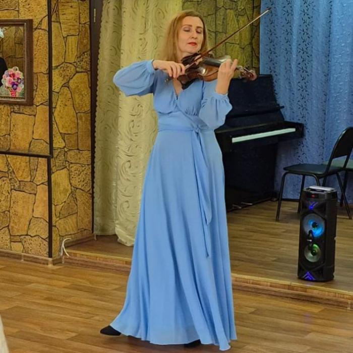 Концерт открыл трогательный дуэт юных скрипачей Козицина Настя-Мячев Савелий. А еще одно произведение они сыграли вместе со своим педагогом Татарчюк О.А.