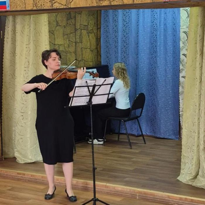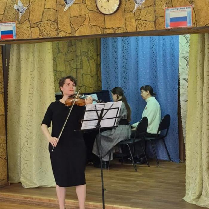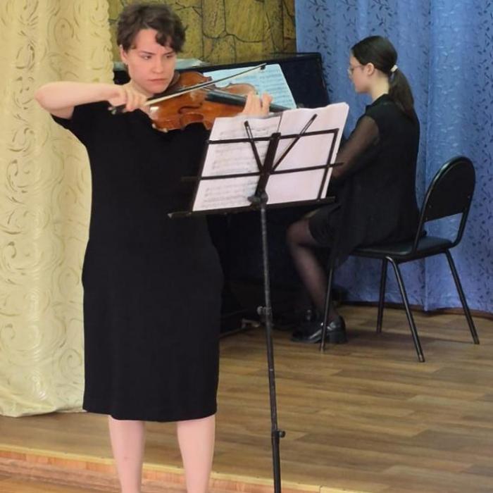 Уверенно и по взрослому прозвучали выступления восьмиклассниц фортепианного отделения(Ждановой Ярославы, Павловой Екатерины и Щукиной Дарьи), которые уже совсем скоро будут сдавать концертмейстерский класс. Девочки выступали вмести с педагогом по классу скрипки Харитоновой И.С.