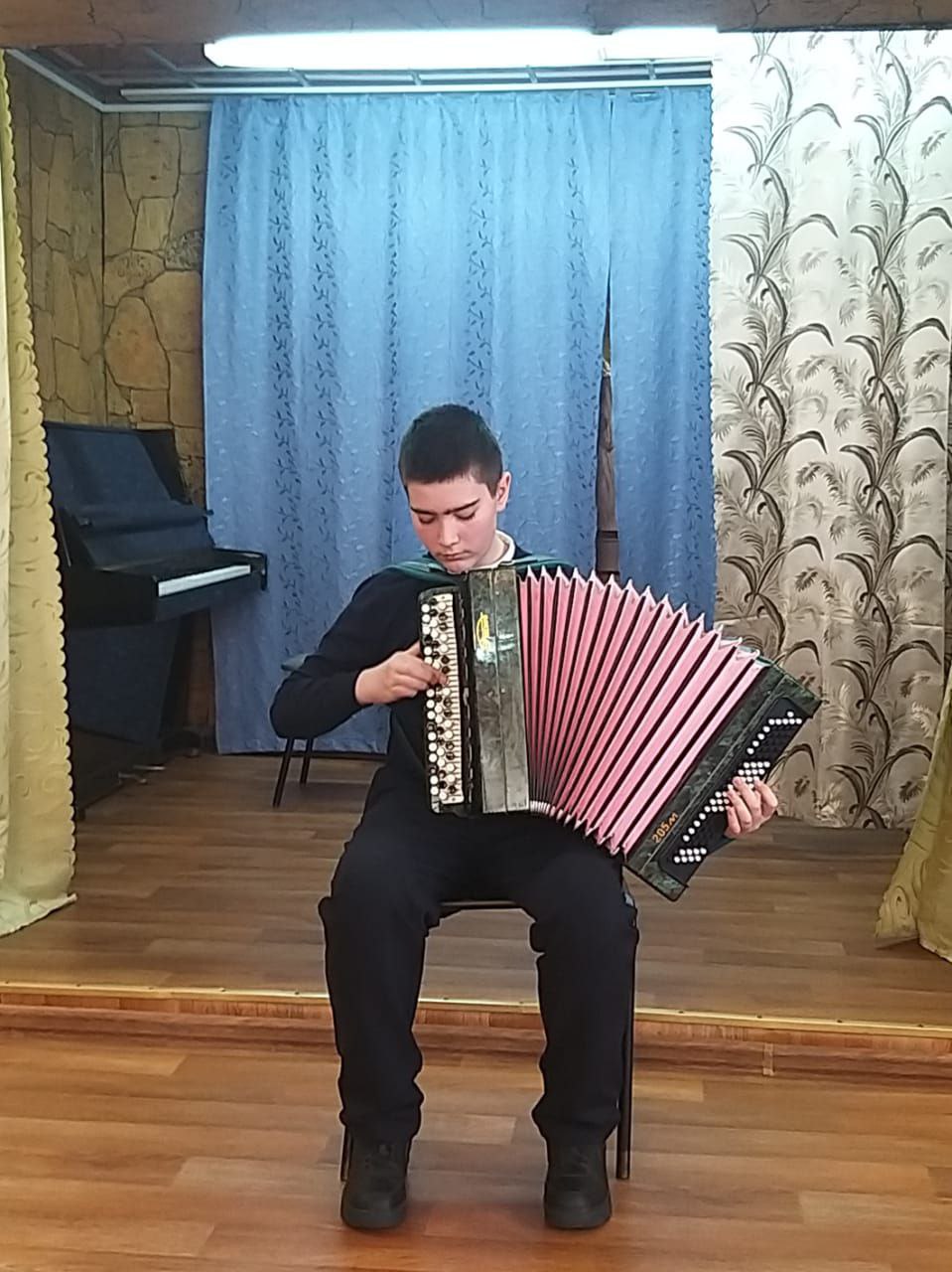 Как всегда, лидерами по количеству участников  на этом концерте было отделение народных инструментов. Ребята показали красоту и мастерство игры  на всех народных инструментах. Выступили  ансамбль «Рондо» (Марамыгина Лея, Александрова Алиса, Голышева Вика), Шенец Михаил, Бакиев Александр, Кутузов Дмитрий, Семенов Арсений, Билалов Макар.