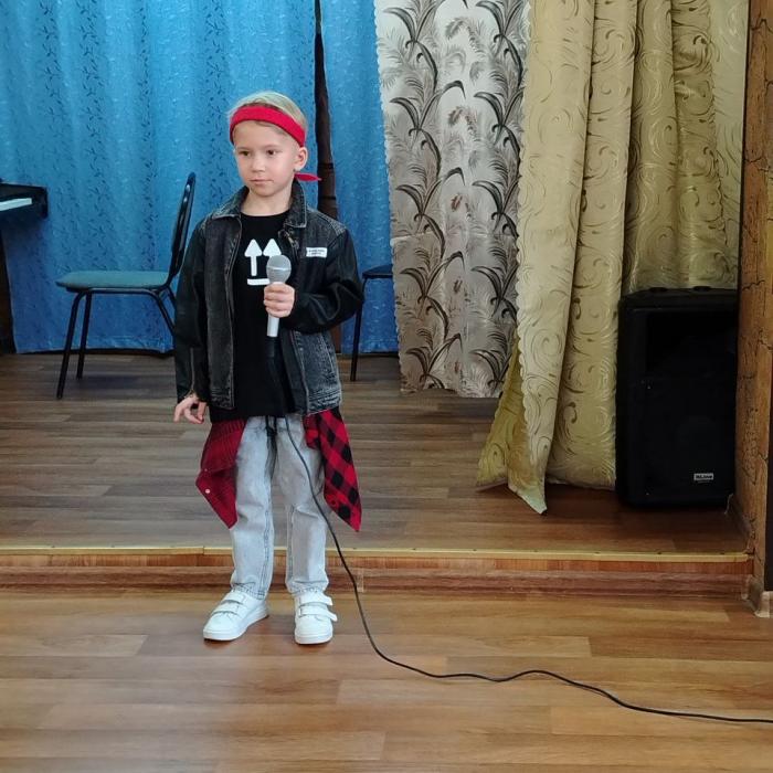 А закончил концерт первоклассник Пайвин Илья с песней «Кони в яблоко» (из репертуара Виктора Салтыкова).