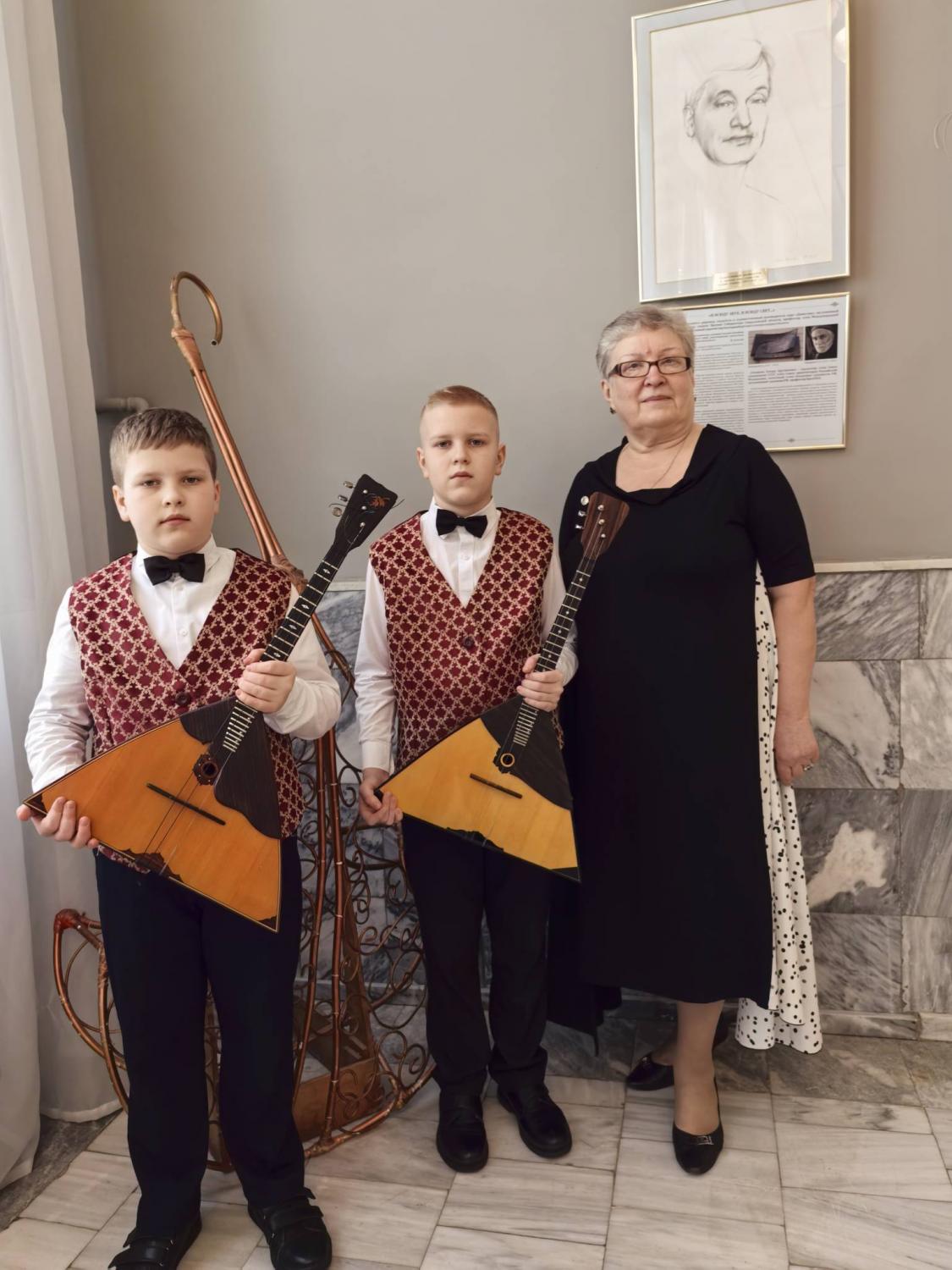 Четвёртый год подряд на Гала-концерте выступал ансамбль музыкального образования МНАОУК «Гимназия «Арт-Этюд» - Арт-трио «Братья и бабушка» Шанин Григорий, Шанин Егор (балалайки, преподаватель Семёнова И.В.) и Любовь Александровна Натина (фортепиано);
