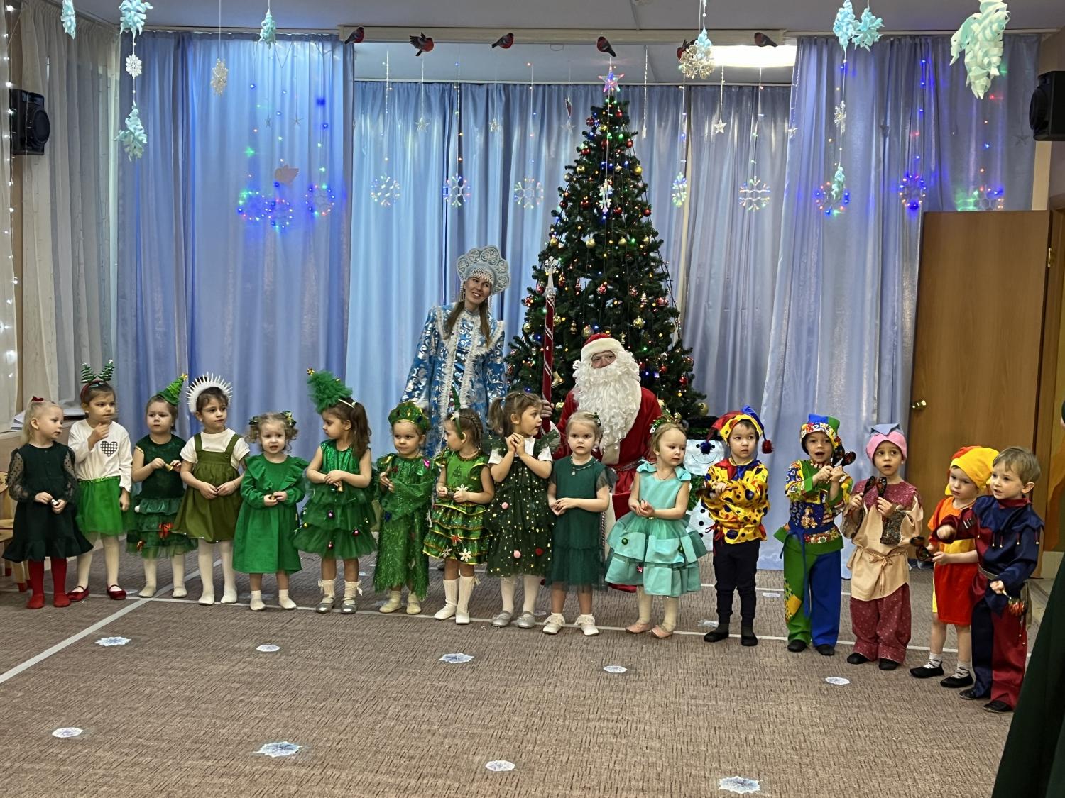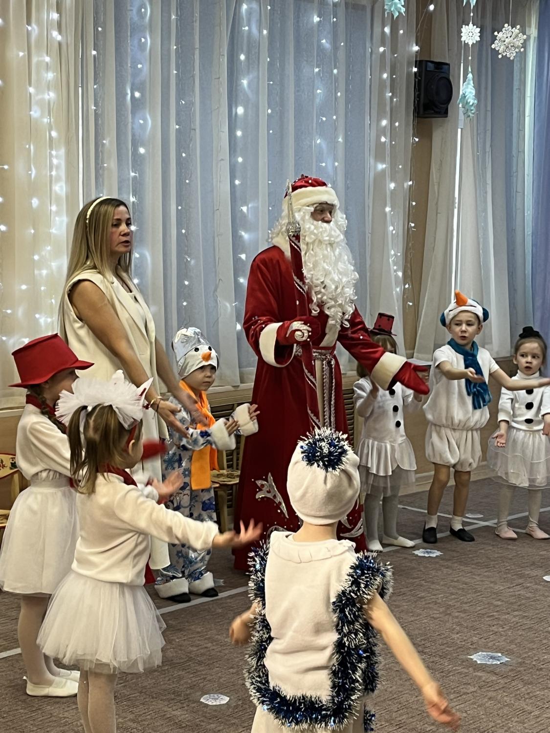 Утренники прошли легко и радостно, словно на одном дыхании! Каких только героев не было на праздниках! Снежинки и зайчата, нарядные Ёлочки и Петрушки, Снеговики и Снеговички. А герои любимых сказок в старшей и подготовительной группах устроили парад карнавальных костюмов! Особый праздничный подъем обострил чувства детей, они иначе, чем на обычных занятиях, прониклись содержанием исполняемых песен, стихотворений, танцев, чувствовали себя настоящими артистами! Всем запомнились образы сказочных героев, блестяще исполненные нашими педагогами. И, конечно же, море радости и эмоций вызвали подарки, врученные детям из рук самого Дедушки Мороза!