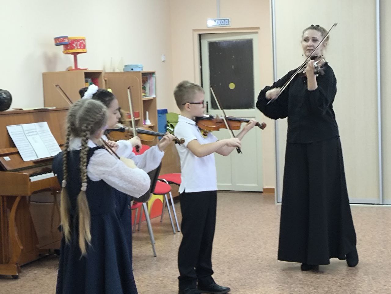 Юные музыканты познакомили малышей со своими музыкальными инструментами.В зале детского сада звучали домра, скрипка, баян и фортепиано.