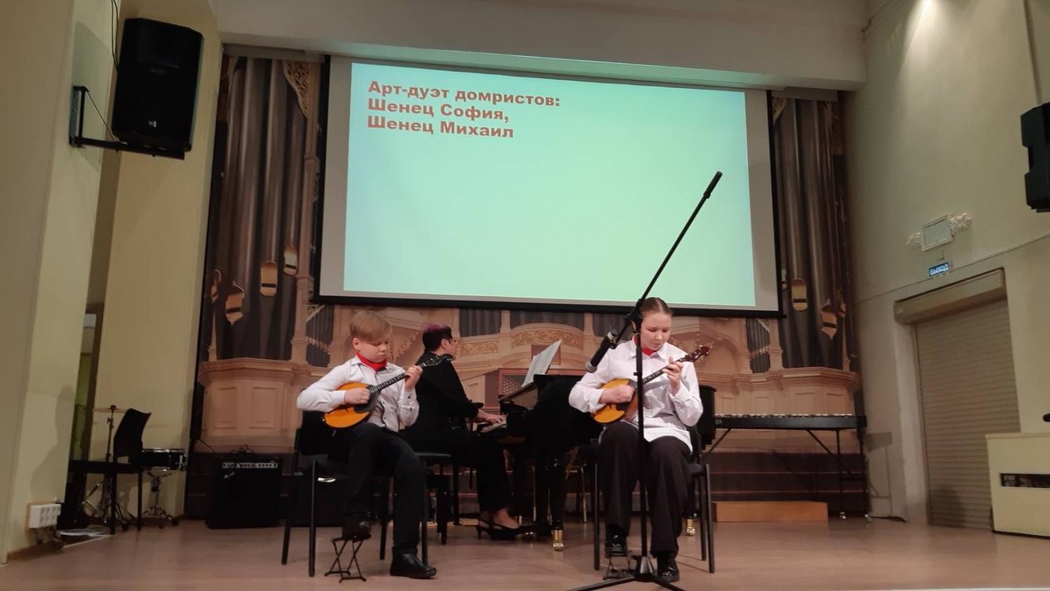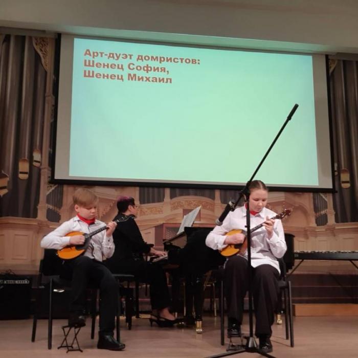- Арт-дуэт домристов Шенец София и Шенец Михаил (преподаватель Семёнова И.В., концертмейстер Гусельникова С.В.);