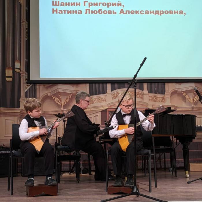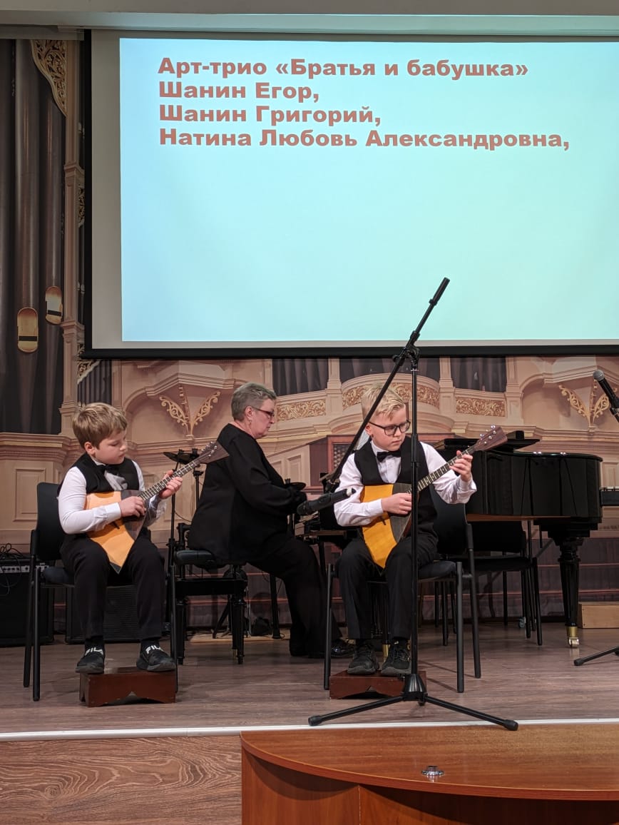 - Арт-трио «Братья и бабушка» Шанин Егор, Шанин Григорий (балалайки, преподаватель Семёнова И.В.) и Любовь Александровна Натина (фортепиано);
