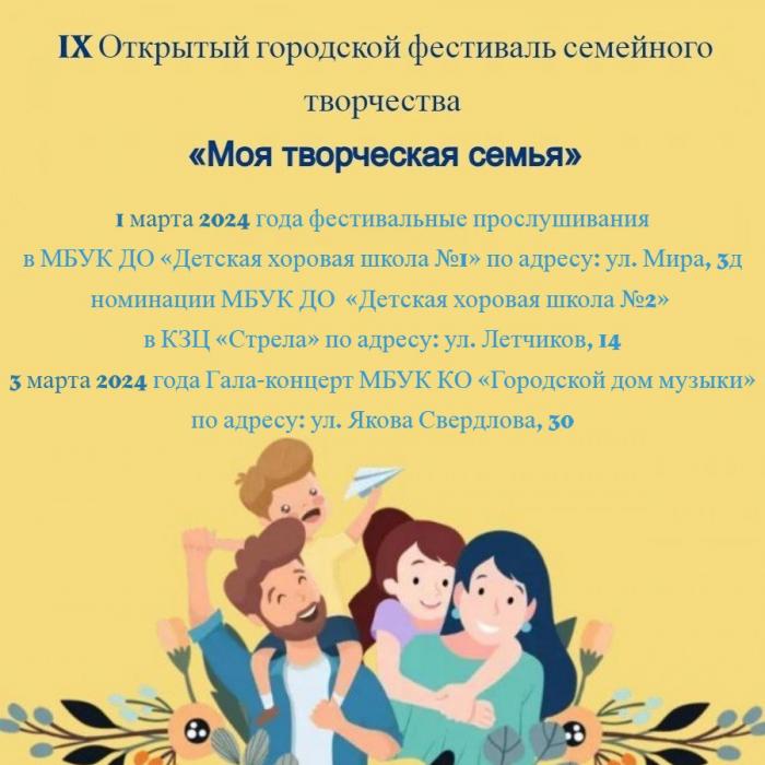 3 марта 2024 года в Городском доме музыки состоялся Гала-концерт IX Открытого городского фестиваля семейного творчества «Моя творческая семья».
