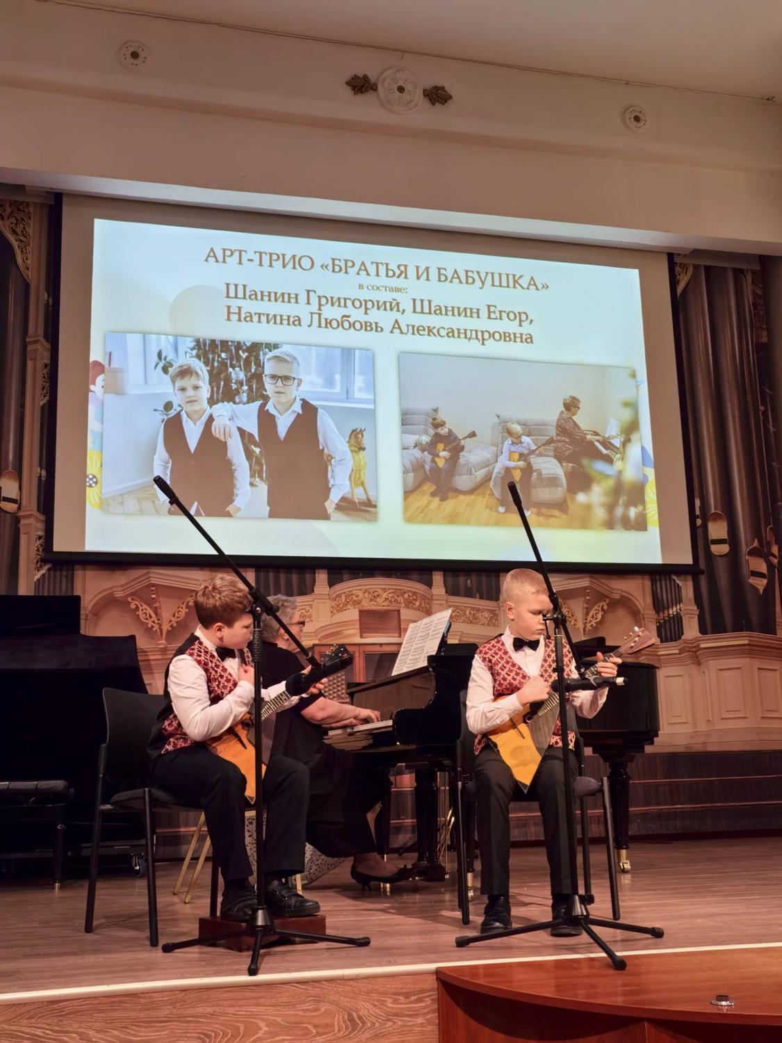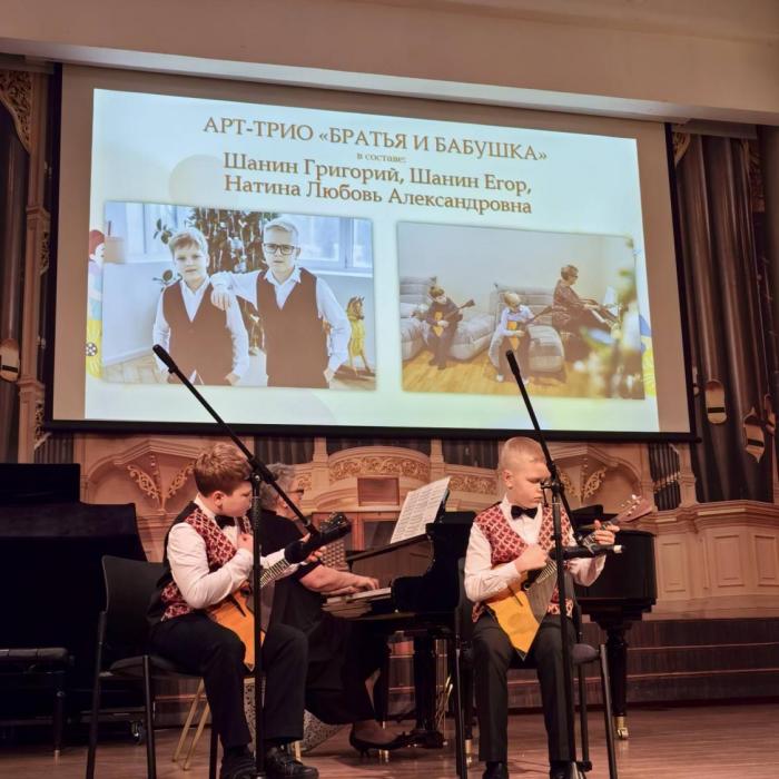 Четвёртый год подряд на Гала-концерте выступал ансамбль музыкального образования МНАОУК «Гимназия «Арт-Этюд» - Арт-трио «Братья и бабушка» Шанин Григорий, Шанин Егор (балалайки, преподаватель Семёнова И.В.) и Любовь Александровна Натина (фортепиано);