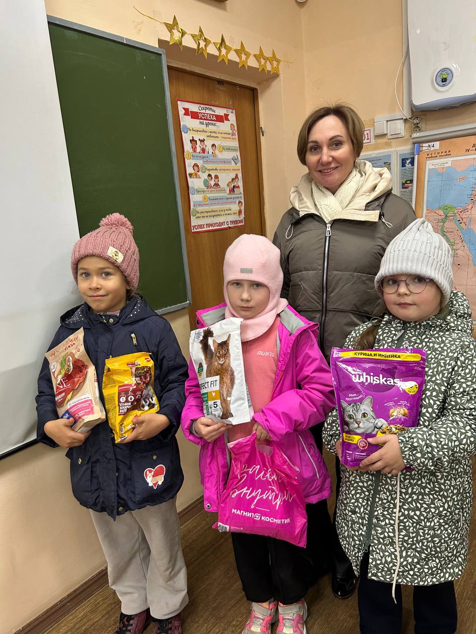 Особая благодарность — воспитателю гимназии Ирине Сергеевне Швагер, которая координировала сбор помощи и сумела объединить вокруг доброго дела детей, родителей и педагогов. Благодаря её заботе и настойчивости акция приобрела такой масштаб и собрала значительные результаты. Поддержку организации мероприятия оказала и советник директора по воспитанию Мария Алексеевна, помогая ребятам в логистике и связи с приютами.