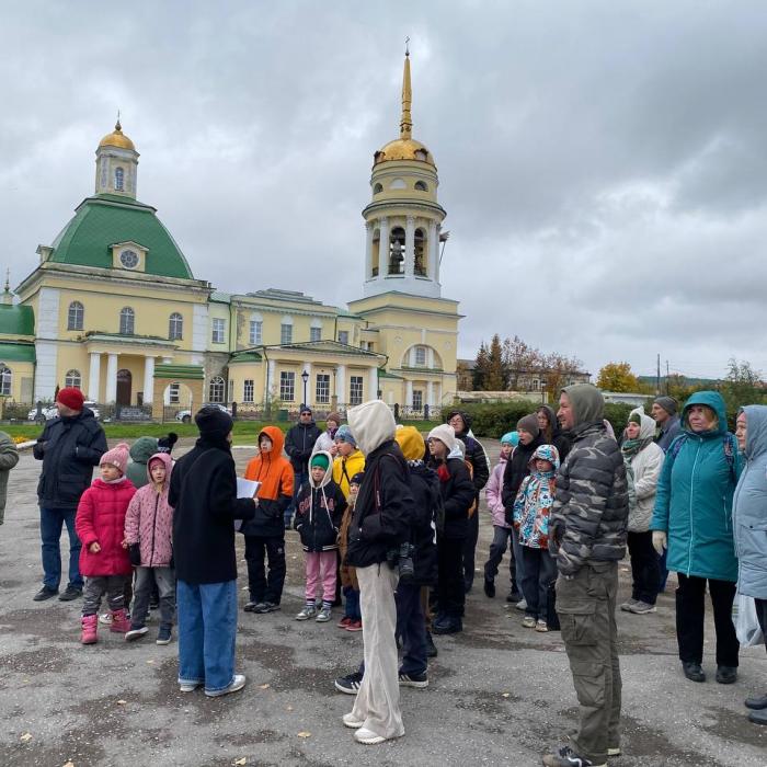 Гуляя по старинным улицам, мы рассматривали сохранившиеся дома и лавки каменских купцов и главное здание на соборной площади — Свято-Троицкий кафедральный собор с его необычным куполом и колокольней с ротондой. Ребят поразила история про здания: в разные годы здесь были пионерский клуб, музей, библиотека, позже его передали швейной фабрики, а колокольню до 1940-х годов использовали как парашютную вышку.