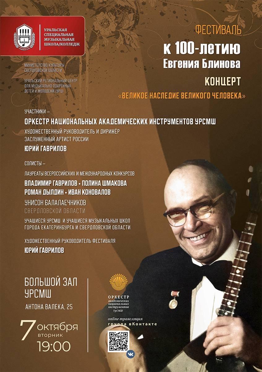 С 5 по 8 октября 2025 года прошёл фестиваль в честь 100-летия со дня рождения Евгения Блинова – основателя Уральской балалаечной школы.