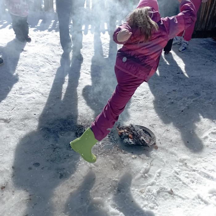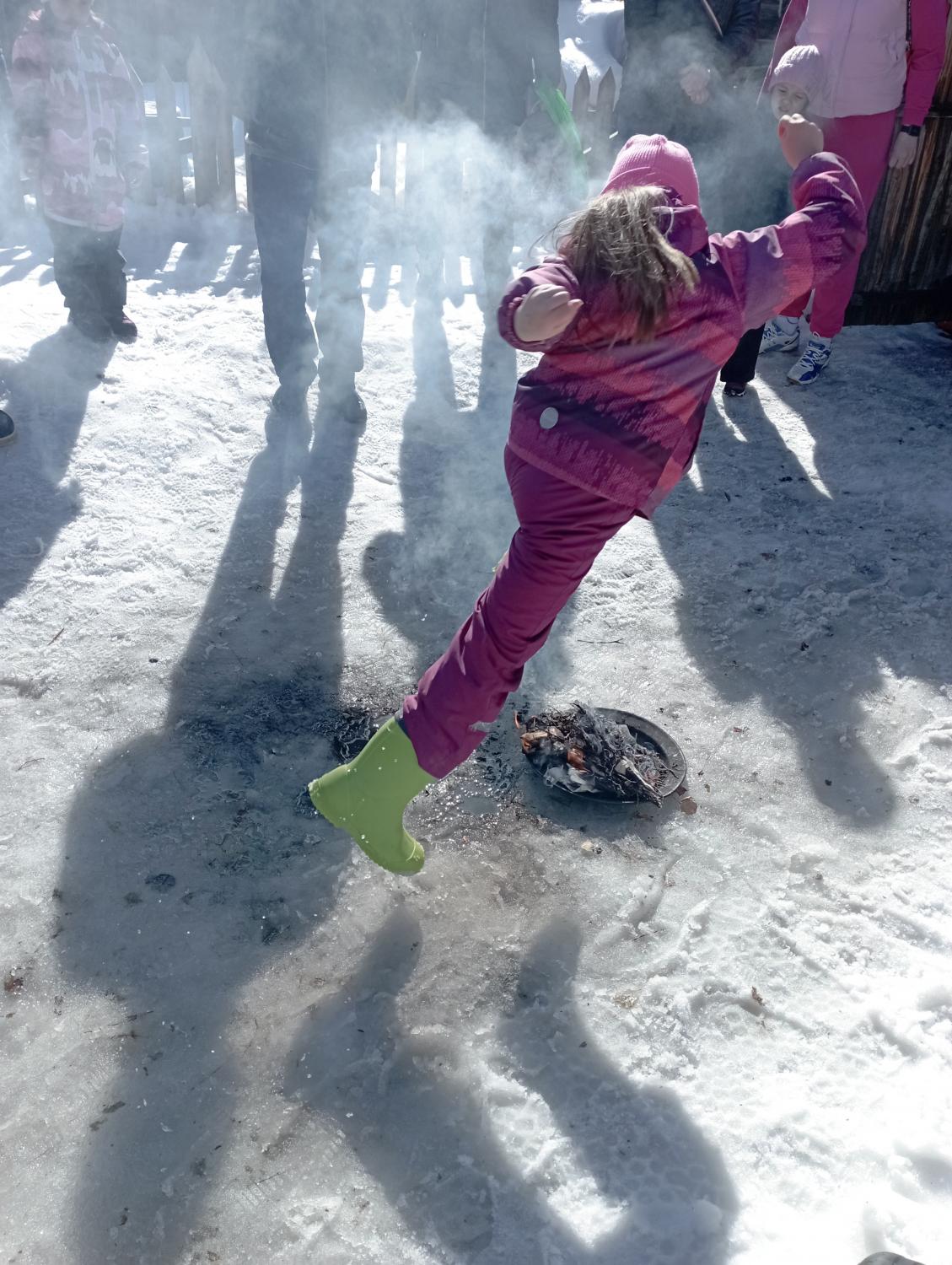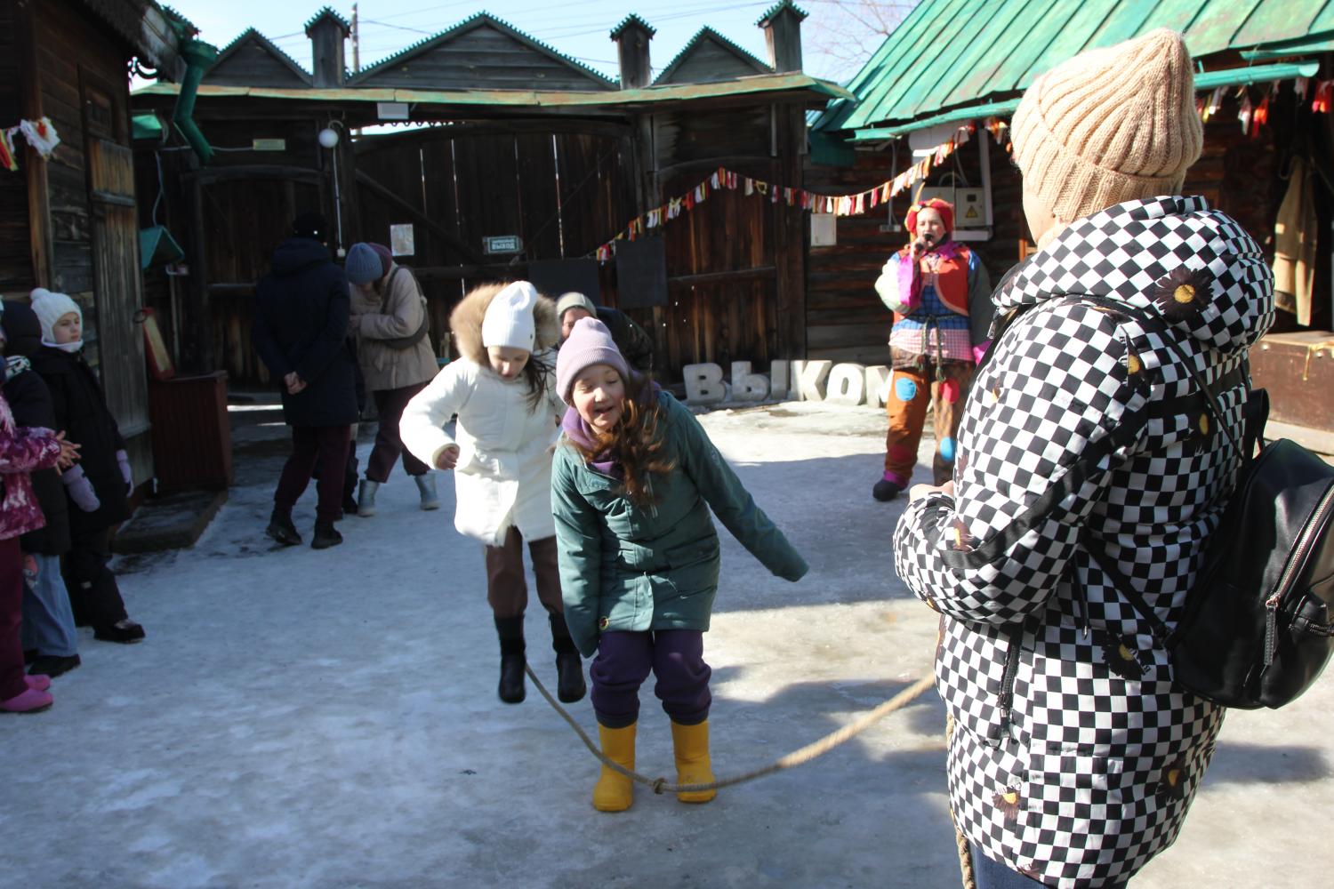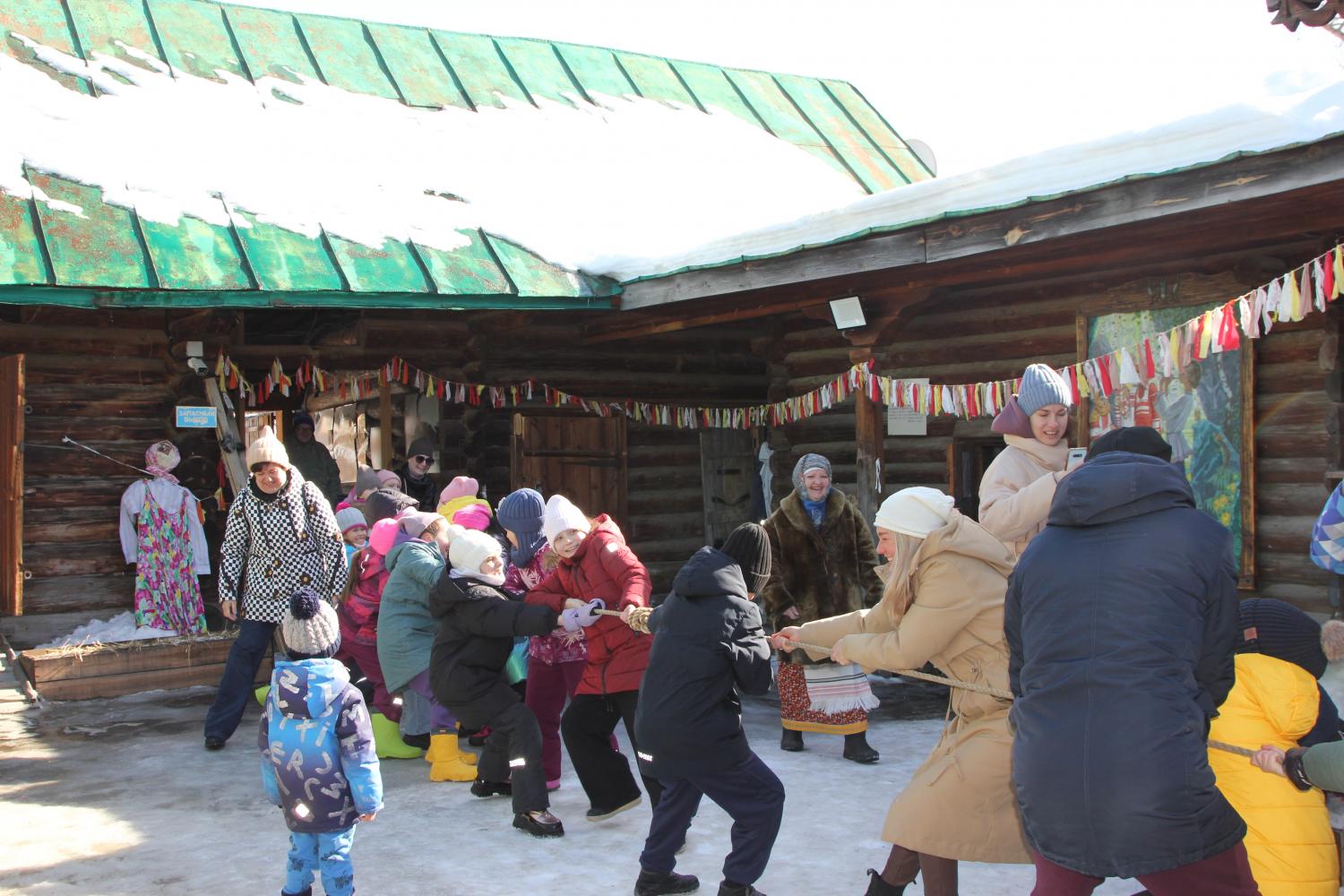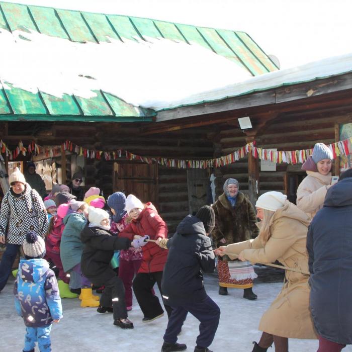 После экскурсии на большом дворе ребята поиграли в народные игры, мальчики и девочки соревновались в перетягивании каната. Но самым ярким впечатлением стало сжигание чучела Масленицы и закидывание её снежками, нашептывание на веник бед и неудач и прыжки через костёр, в котором горит этот веник.