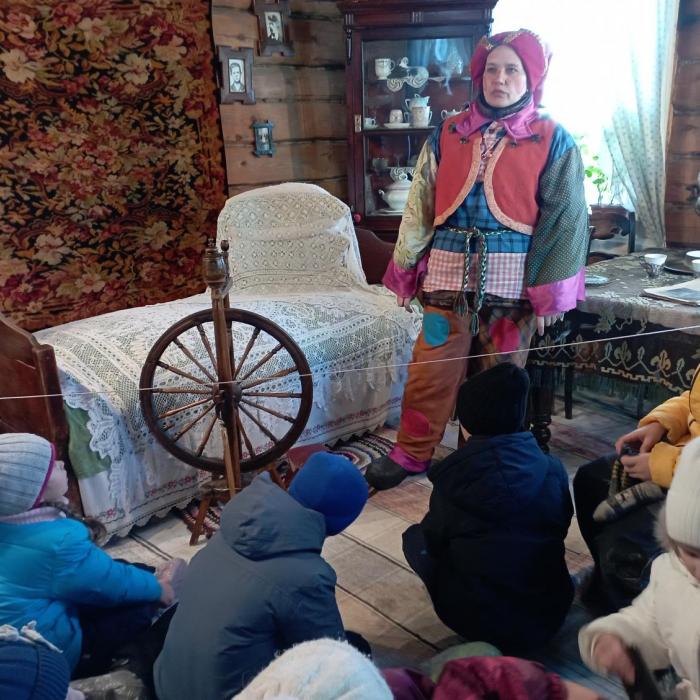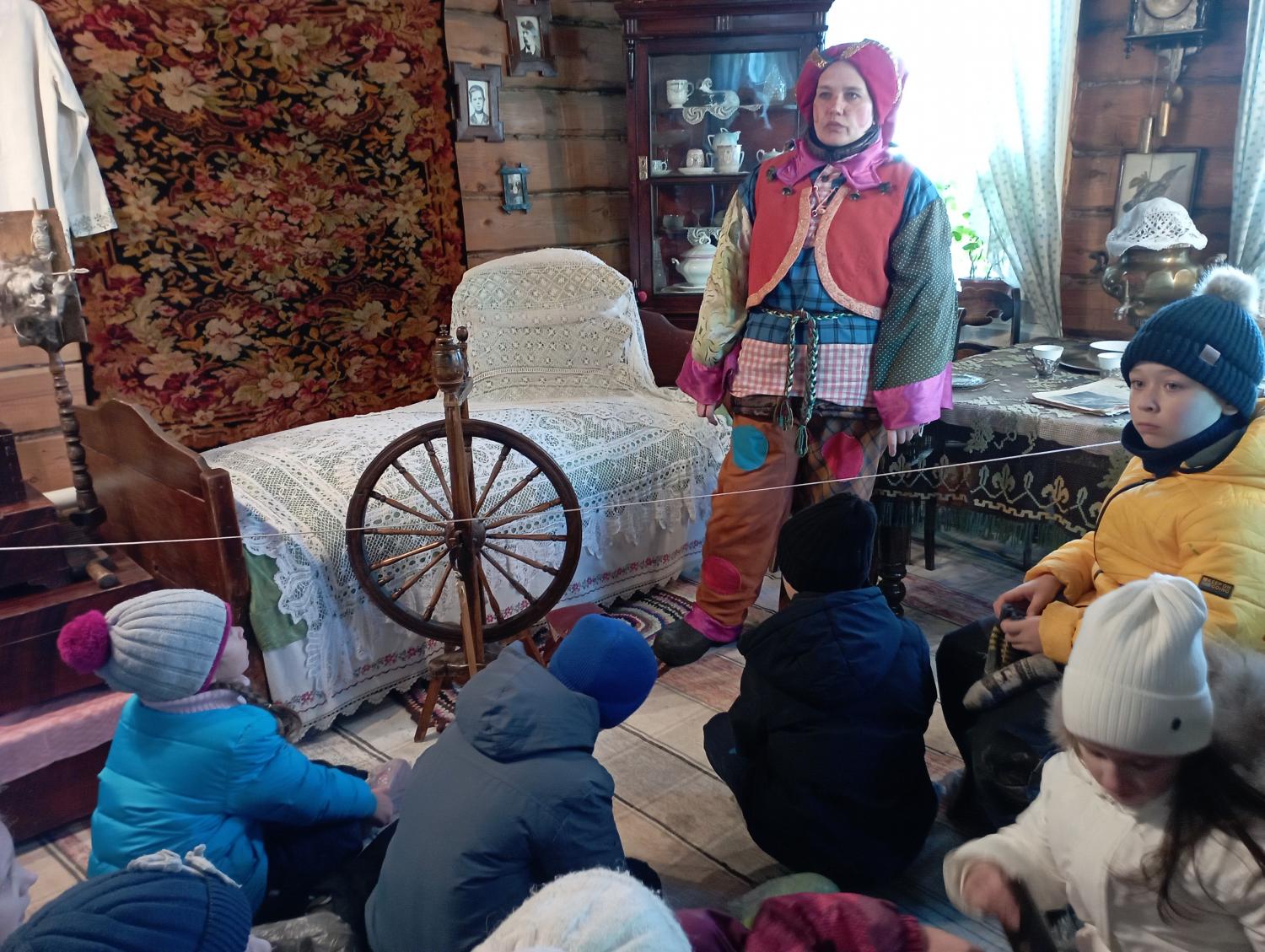 Мы посетили малую избу с жилой комнатой и кухней, амбар, конюшню, чулан, баню. Экскурсантам понравится рассказ о деревенском быте, обычаях Уральского народа и традициях. Нас заворожили шали, скатерти, салфетки необычайной красоты, сделанные мамой Павла Петровича Августиной Стефановной. Умению прясть, ткать, шить, вышивать женщин обучали с раннего детства, на Урале в XIX веке девочки брали в руки прялку уже в 5 лет. Истории о женском трудолюбии и усердии, при подготовке приданного для будущего замужества, как добросовестно и с любовью работали над каждой вещью, создавая настоящие шедевры впечатлили девочек. Они с радостью поделились рассказами о своих увлечениях бисером, вязанием, плетением на кружках в нашей гимназии.