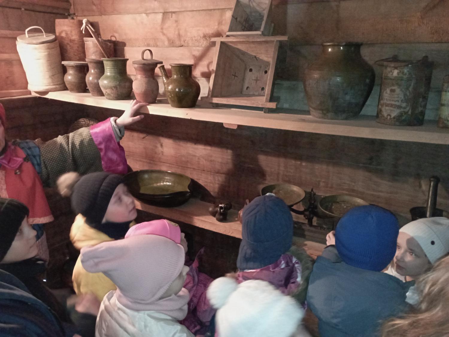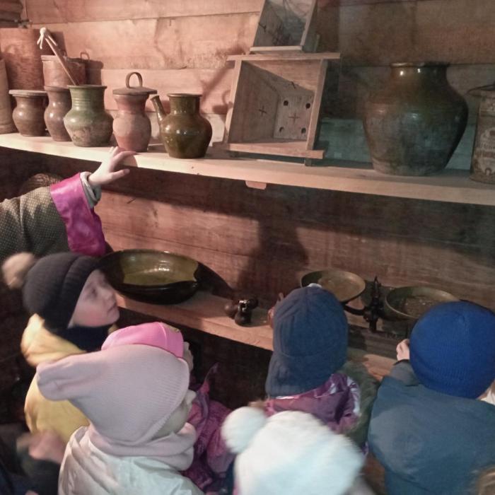 Мы проехали на автобусе по улицам маленького город с богатой историей, посмотрели дома с резными наличниками, остановились около деревянного дома с табличкой "Дом-музей" и окунулись в атмосферу 19 века. Задорно, доступно, интересно, порой и весело на говоре уральской старины экскурсовод Маргарита Григорьевна рассказала о жизни в то время, с гордостью демонстрировала экспонаты. У взрослых посетителей и ребят было ощущение, что мы приехали в гости к родным людям и вот-вот хозяева появятся в доме. Все можно пощупать, потрогать, посмотреть и повертеть в руках! Столько домашних вещиц с интересными названиями и назначением! Например, огромные плетёные корзины, в которых может уместиться ребёнок, предназначались для сбора сосновых шишек. Во времена детства Павла Петровича Бажова пятилетним ребятам давалась работа: набрать 5 корзин сосновых шишек. И оплата за такую работу 1 копейка была вкладом в семейный бюджет. Мы послушали и сравнили звон ботала (нашейного колокольчика для коров и лошадей) и околоточного колокола, который возвещал всему околотку (улице, кварталу) о беде, например пожаре. И сбегался народ! Кто багор, кто ведро тащит –ведь чужой беды не бывает!