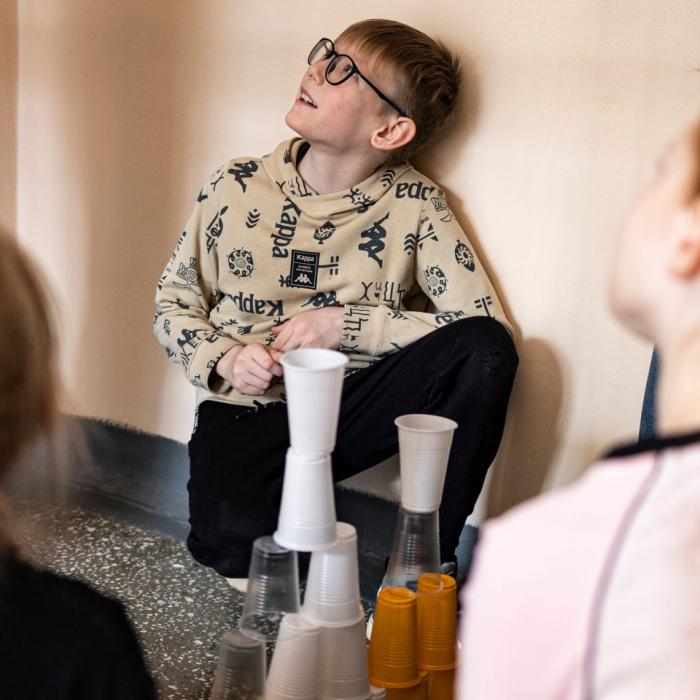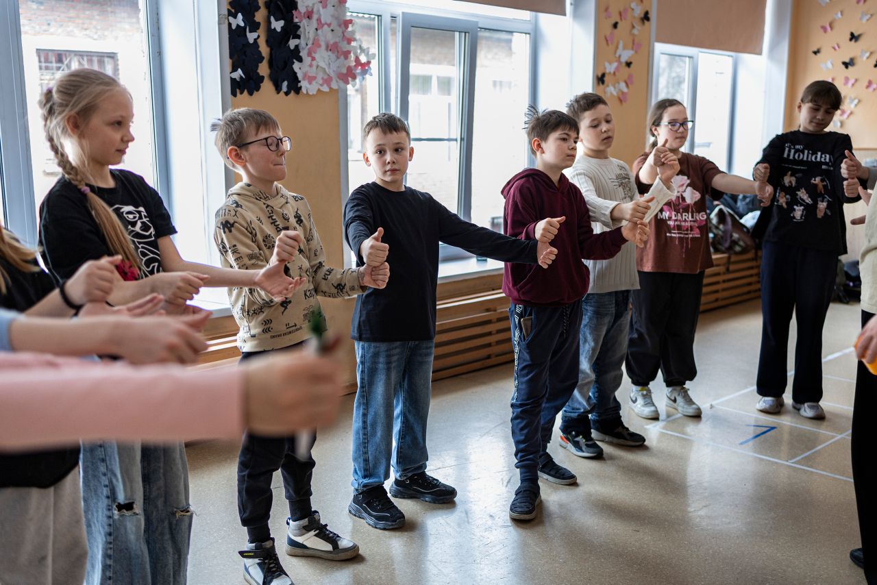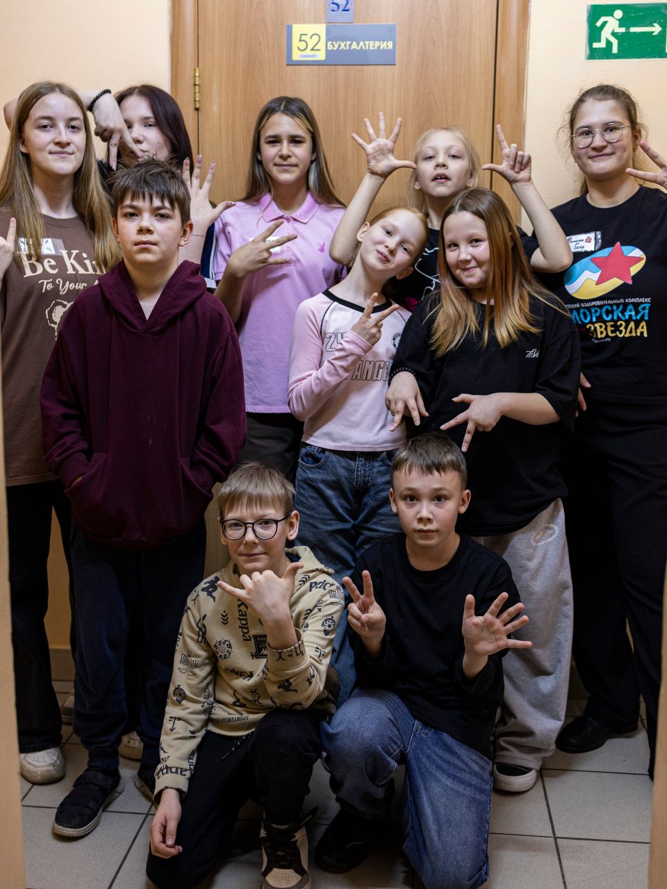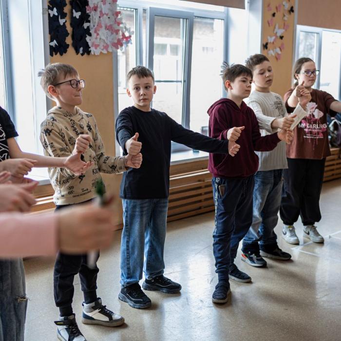 Все занятия интенсива проходили в библиотеке №14, а вот финал этого курса состоялся в субботу, 28 марта, в гимназии «Арт-Этюд». В 10 часов утра все подвожатники, как сами себя назвали участники курса, собрались в актовом зале и с волнением повторяли реплики, проверяли реквизит, прогоняли танцы. Через час в «лагерь» пришли дети. Добровольцами стали ученики 4 «А» класса. Новоиспеченные вожатые разделились на группы и поочередно проводили для детей игры и активности. Сначала они провели игры на знакомство, потом — на сплочение. Дальше был фотоквест, во время которого участники бегали по разным уголкам «Арт-Этюда», выполняли задания и фотографировались всей гурьбой у кабинетов и в узких коридорах.